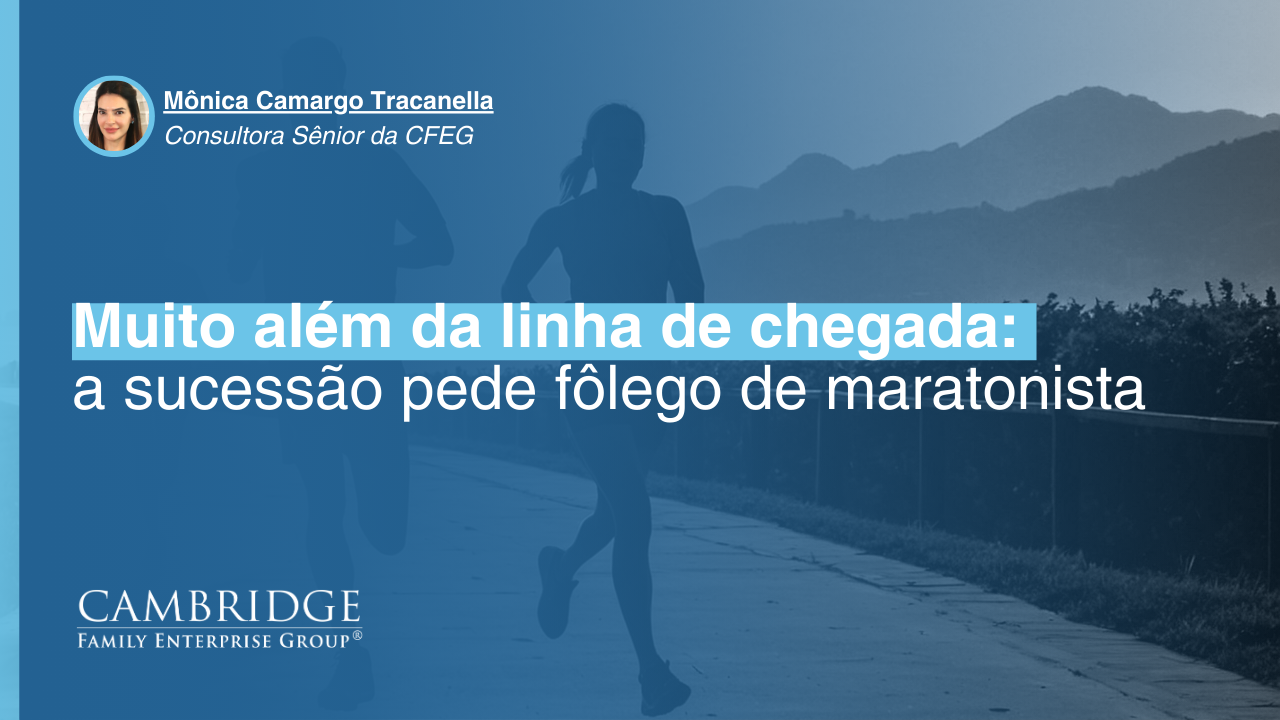 Maratona e sucessão pedem constância. Não basta coragem para largar, é preciso consistência para chegar e sabedoria para aproveitar a jornada. E isso é o que fará a diferença entre quem desiste da prova e quem cruza a linha de chegada, porque, ao final de uma maratona, o que fica não é só a medalha, e sim a transformação.